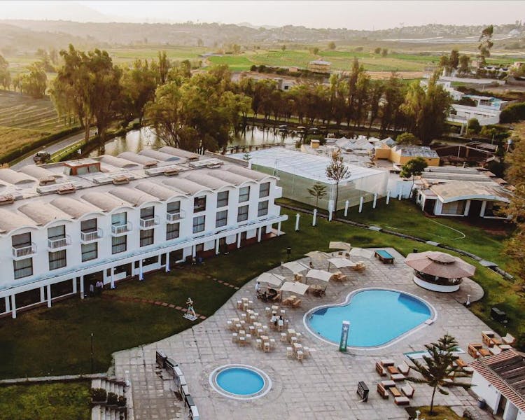 THE HOTEL IS SURROUNDED BY NATURE WITH A PANORAMIC VIEW OF THE MISTI, THE RESTAURANT IS LOCATED ON THE SHORES OF A BEAUTIFUL LAKE, IN ADDITION TO HAVING AN ESPLADE OF MORE THAN 500M2, PERFECT FOR ALL KINDS OF EVENTS
